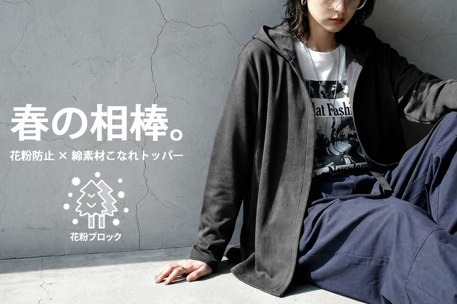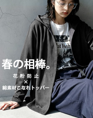 春のお出掛けも快適に!花粉防止×綿素材の優秀素材。大人気花粉防止加工生地アイテムに新作&新色登場!さらっと羽織るだけでこなれるフード付きトッパーはどんなボトムスとも好相性★優秀な機能だけでなくお洒落見え叶えるアイテムは春のワードローブに必ず揃えたい。 -