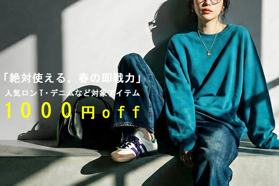 「絶対使える、春の即戦力」対象アイテム1,000円OFFクーポン春コーデに欠かせない“即戦力アイテム”を今だけお得に。人気のロンT・デニム・裏毛トップスなど、着回し力抜群のアイテムが対象。【8,000円以上ご購入で1,000円OFF】の期間限定クーポンをご用意しました。毎日のコーデに頼れる人気アイテムを、この機会にぜひチェックしてみてください。
