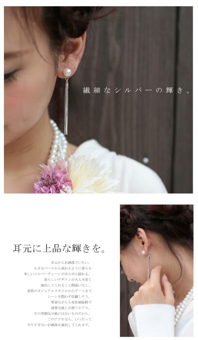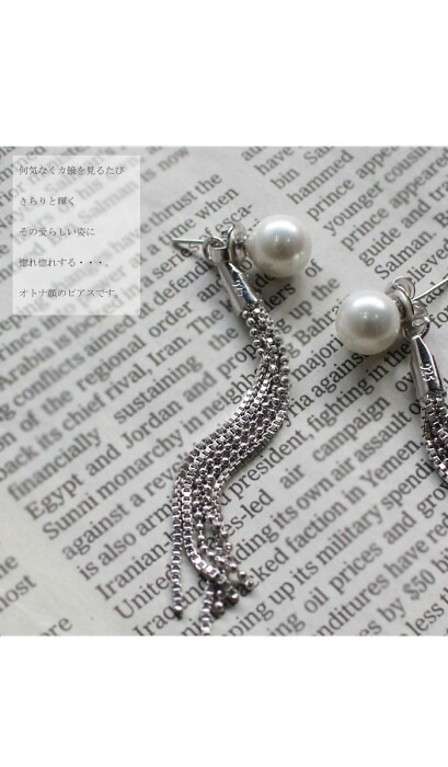 アクセ送料無料 揺れるたびに輝きを放つタッセルパールピアス・再再販。フリンジ パール ピアス◎メール便可!