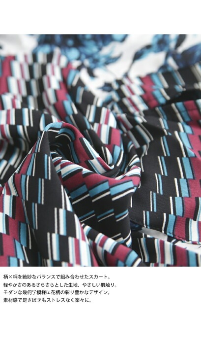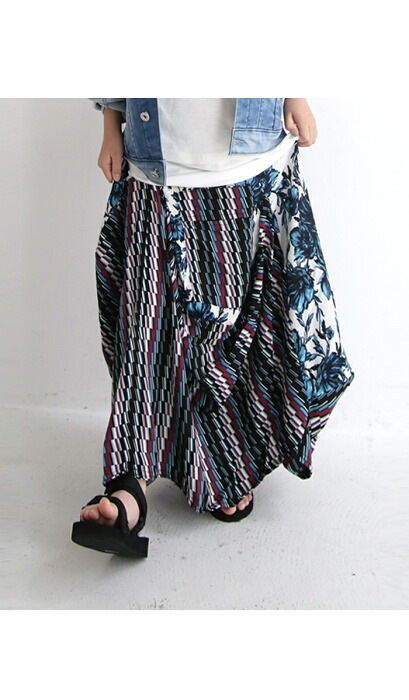 | 商品名 | 趣ある柄と柄が作り出す別格の雰囲気。変形ロングスカート |