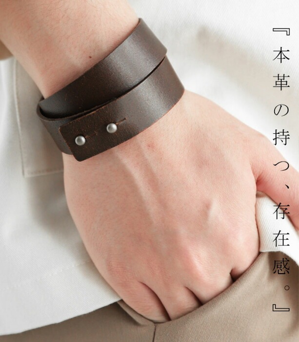 ホンモノ志向なら絶対欲しい。シンプル本革レザーブレス・再再販。メール便不可