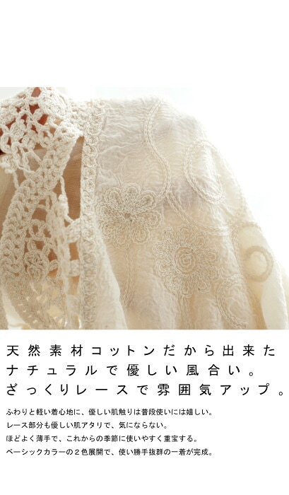 レース刺繍トップス レディース トップス 五分袖 綿100 送料無料・再入荷 メール便不可