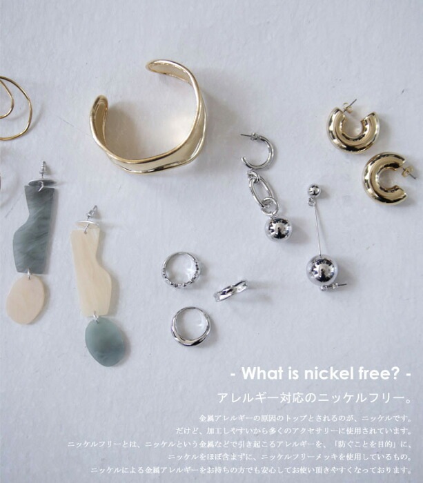 ニッケルフリーとはニッケルという金属などで引き起こるアレルギーを「防ぐことを目的」にニッケルをほぼ含まずにニッケルフリーメッキを使用しているもの。