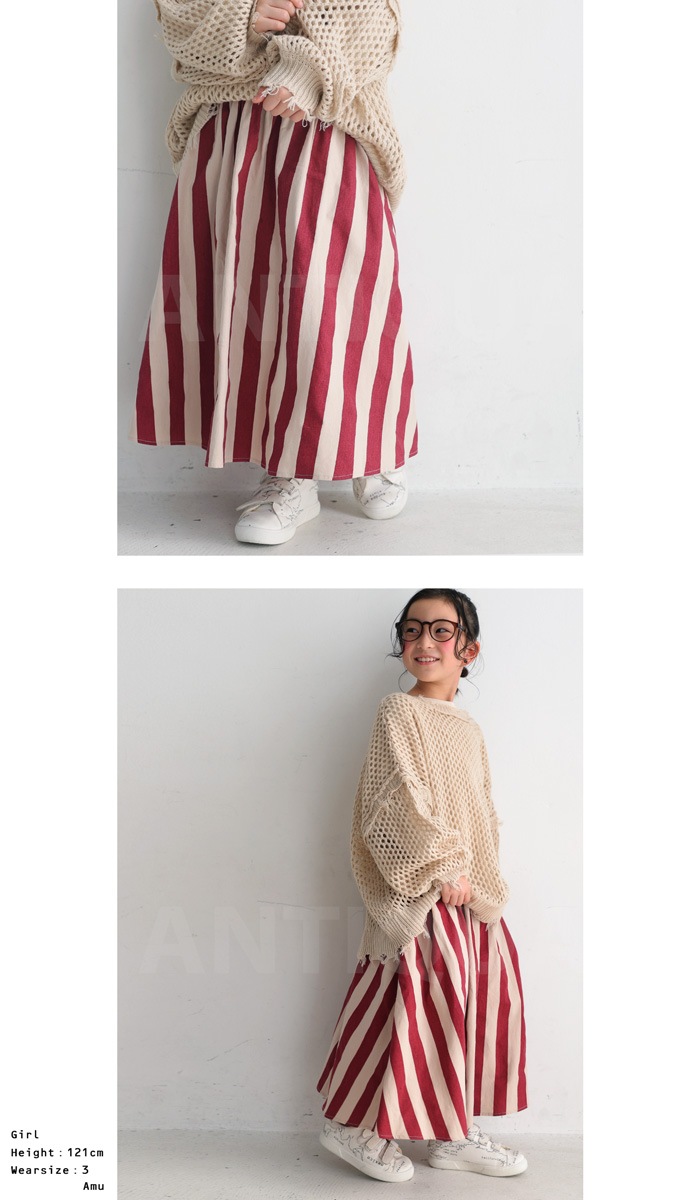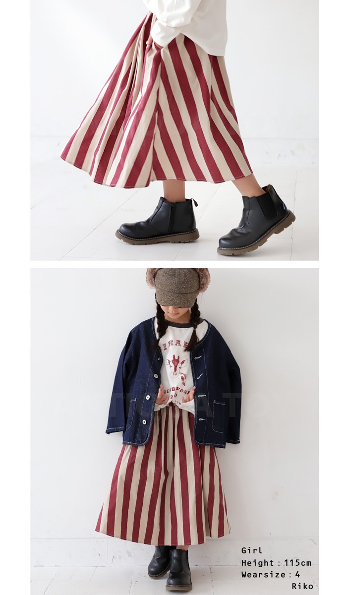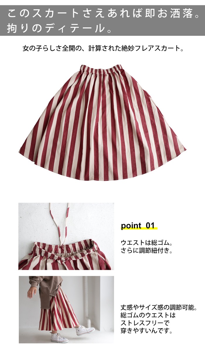スカート ストライプ 子供服 ロングスカート ボトムス キッズ・再再販。(100)メール便可 TOY