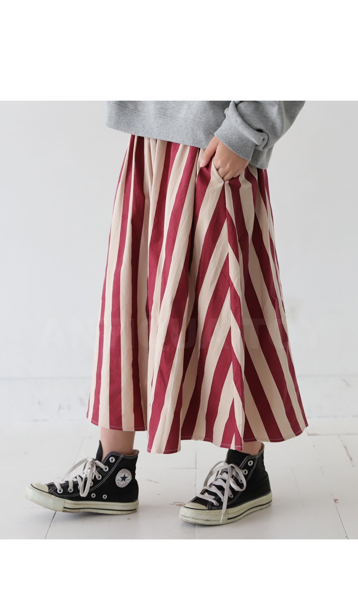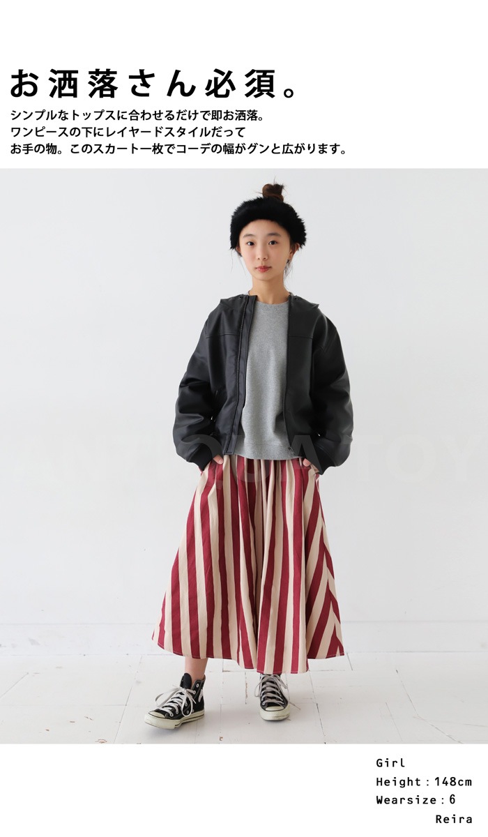 スカート ストライプ 子供服 ロングスカート ボトムス ジュニア・再再販。(100)メール便可 TOY