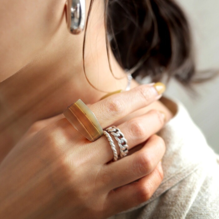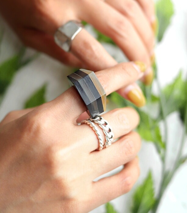アクセ送料無料 指輪 リング レディース 水牛 角 立体 シャープ 大ぶり・(80)メール便可