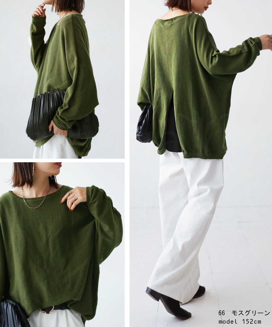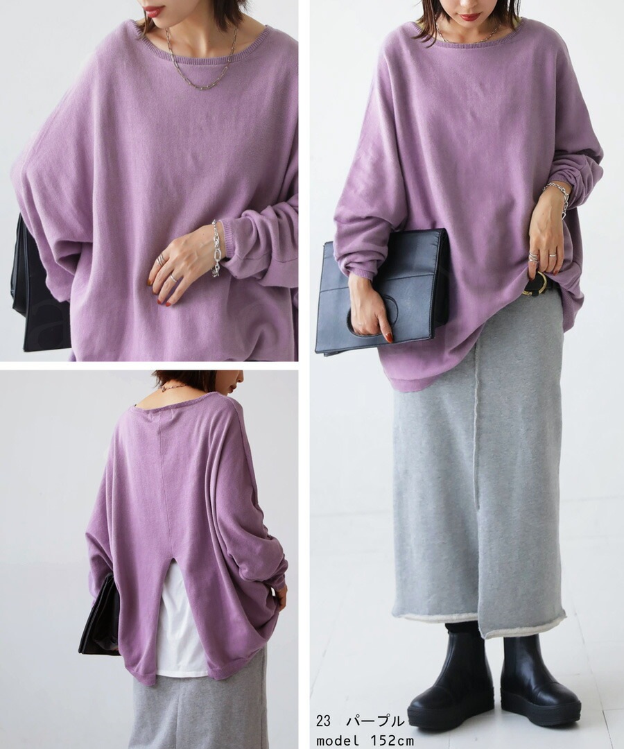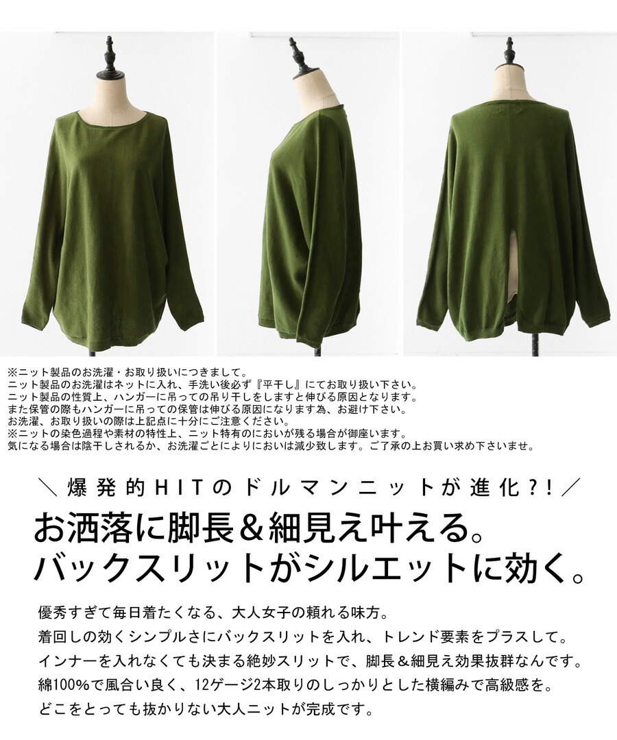 バックスリット ドルマンニット ニット レディース 綿ニット・(500)メール便可