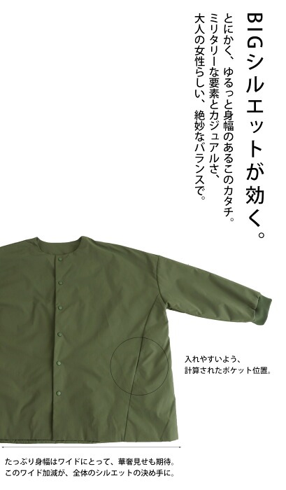 【検索ワード】ミリタリービッグアウター アウター レディース コート MA-1 羽織り 長袖 ゆったり ボリューム オーバーサイズ ワイド ノーカラー 無地 ミリタリー リブ ふんわり 軽量 暖かい マット ビッグシルエット 大きいサイズ 親子コーデ リンクコーデ お揃い antiqua アンティカ 大人 おしゃれ 10代 20代 30代 40代 50代 60代 秋 冬 お洒落 カジュアル かわいい かっこいい あんてぃか