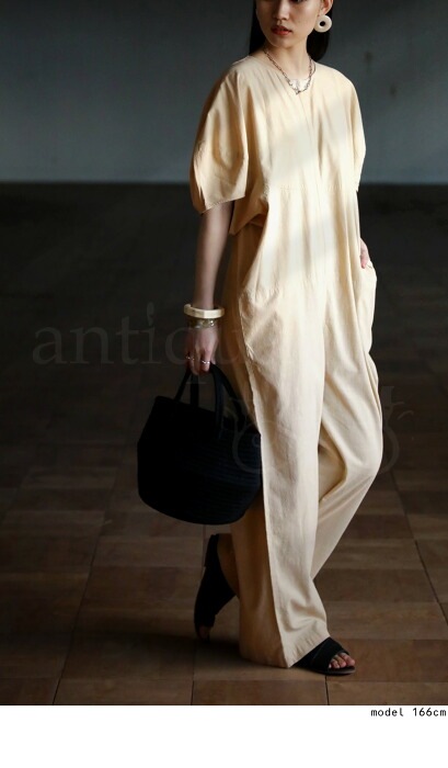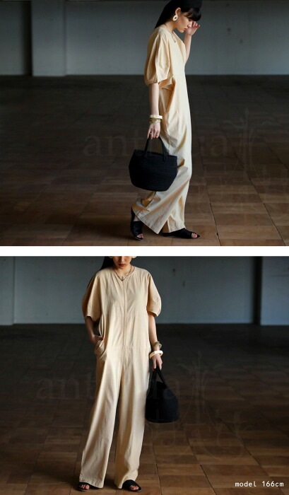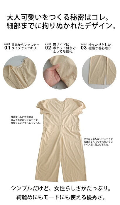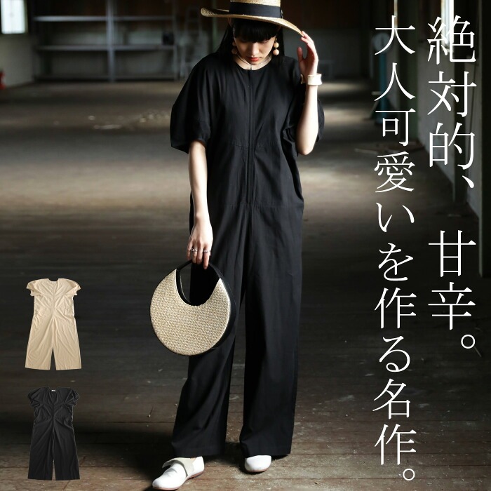 オールインワン サロペット レディース 半袖 綿混 送料無料・再販。(100)メール便可