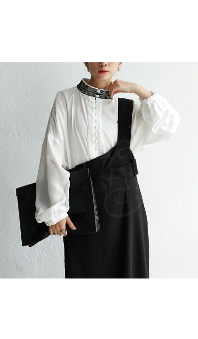 【検索ワード】レース襟シャツ シャツ レディース トップス 長袖 きれいめ 無地 レース襟 レース ゆったり ワイド プルオーバー プルオーバーシャツ ブラウス スタンドカラー ハイネック ドレスシャツ 上品 落ち感 くるみボタン オーバーサイズ 大きいサイズ フォーマル 結婚式 二次会 パーティー オケージョン antiqua アンティカ 大人 おしゃれ 10代 20代 30代 40代 50代 60代 春 夏 秋 冬 お洒落 カジュアル かわいい かっこいい あんてぃか