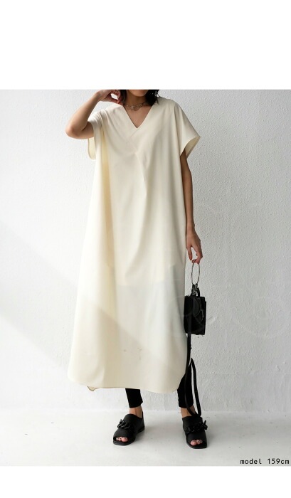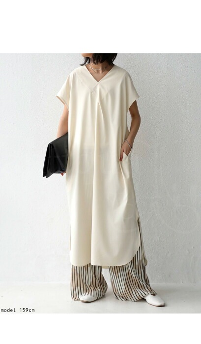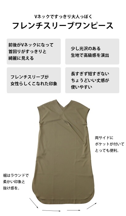 Vネック×フレンチスリーブ。絶妙な抜け感の洗練ワンピで即お洒落。