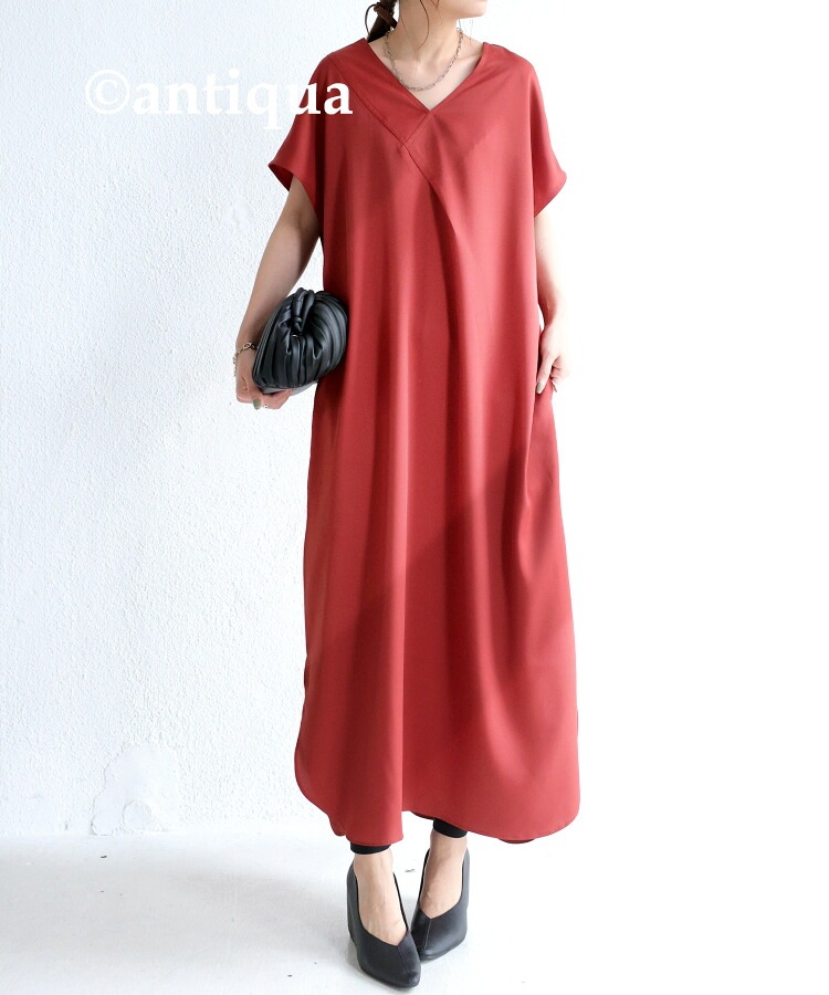 【検索ワード】フレンチスリーブワンピース ワンピース レディース ロング 無地 半袖 フレンチスリーブ Vネック シンプル きれいめ 上品 高級感 裾ラウンド スリット 落ち感 着痩せ 体型カバー ゆったり ロングワンピ ワンピ 大きいサイズ フォーマル パーティー オケージョン antiqua アンティカ 大人 おしゃれ 10代 20代 30代 40代 50代 60代 春 夏 お洒落 カジュアル かわいい かっこいい あんてぃか