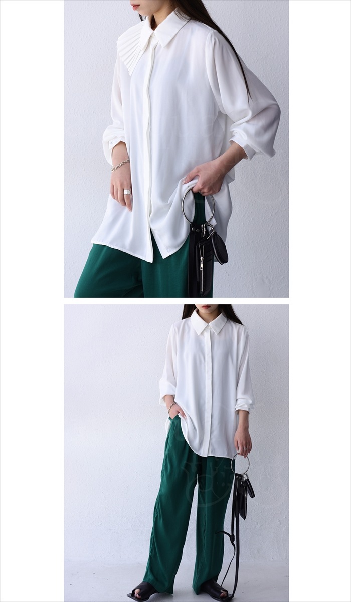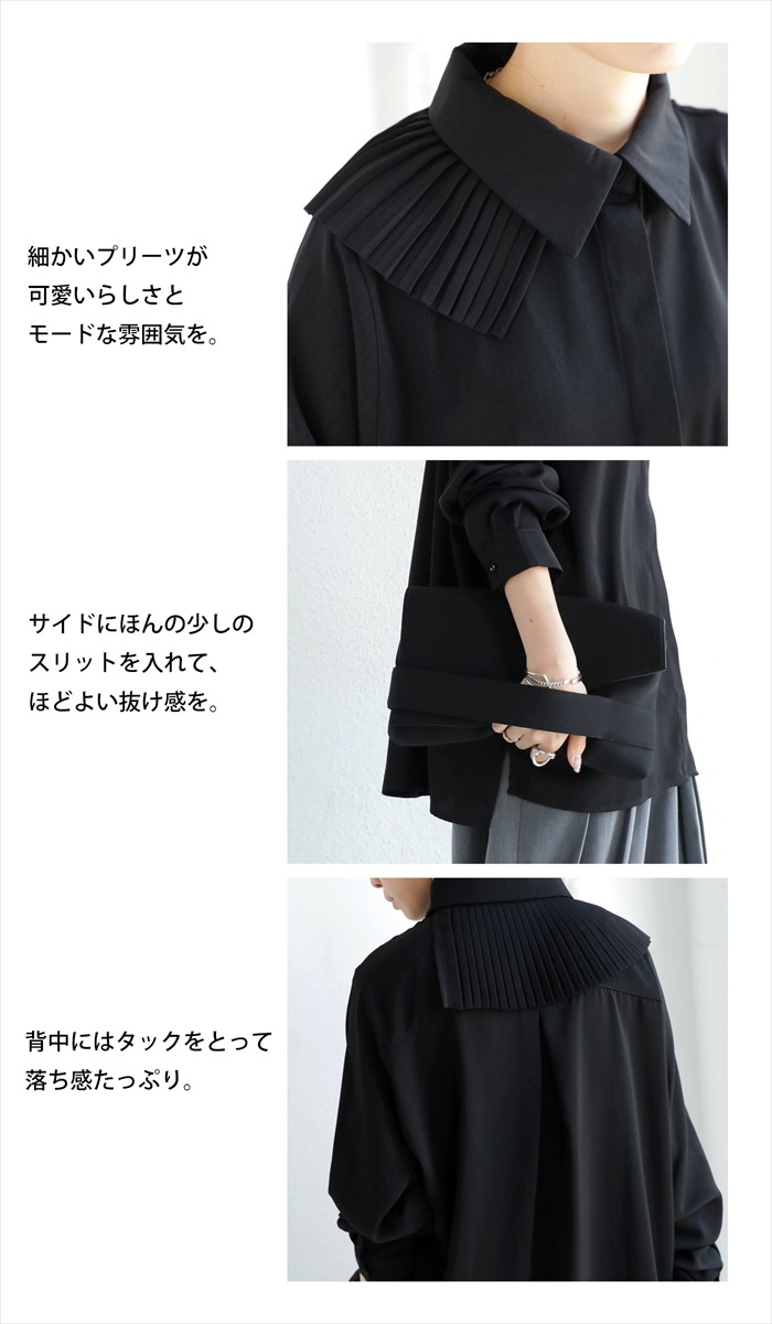 【検索ワード】取り外し プリーツ襟付きシャツ シャツ レディース トップス 長袖 無地 シンプル 2WAY ブラウス プリーツ フリル 付け襟 レギュラーカラー 上品 きれいめ 落ち感 とろみ生地 前後差 スリット 長め丈 モード 通勤 オフィス フォーマル オケージョン 入園式 卒園式 入学式 卒業式 セレモニー 発表会 謝恩会 晴れの日 ハレの日 antiqua アンティカ 大人 おしゃれ 10代 20代 30代 40代 50代 60代 春 夏 秋 冬 オールシーズン お洒落 カジュアル かわいい かっこいい あんてぃか