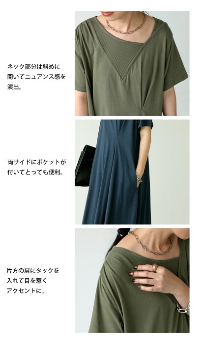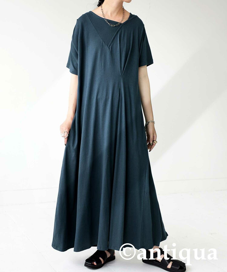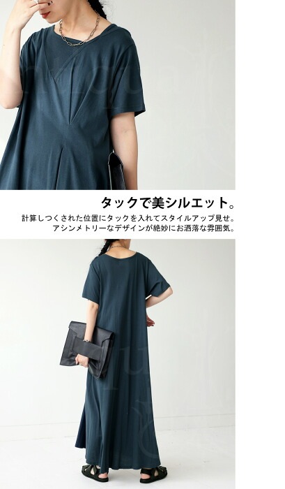 【検索ワード】リブ切替え タックワンピース ワンピース レディース ロング 半袖 綿100 無地 シンプル ゆったり Tシャツワンピ カットワンピ カットソー タック 切替え 変形リブ アシンメトリー アシメ Aライン マキシ丈 綿 コットン ロングワンピ ワンピ 大きいサイズ antiqua アンティカ 大人 おしゃれ 10代 20代 30代 40代 50代 60代 春 夏 お洒落 カジュアル かわいい かっこいい あんてぃか