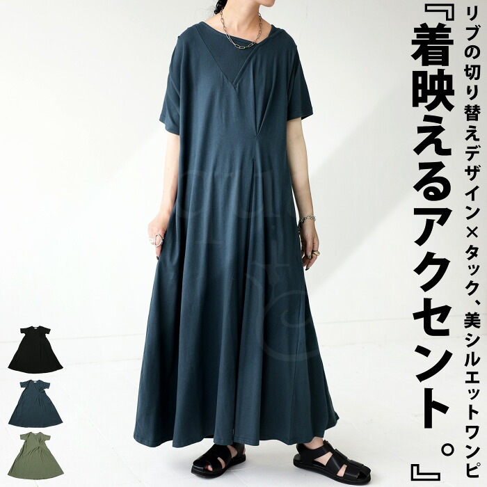 『着映えるアクセント』リブの切替デザイン×タック、美シルエットワンピ。