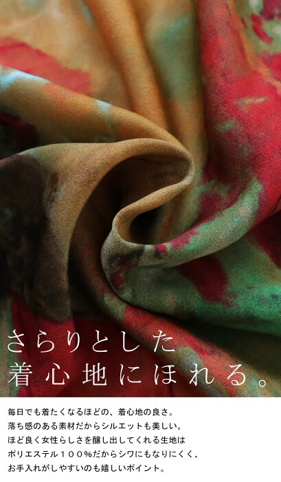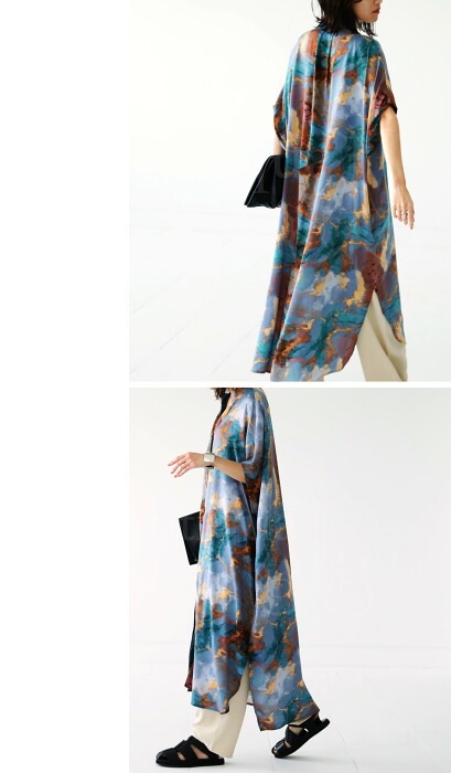 美しい落ち感。水彩のようなアート柄が映える。