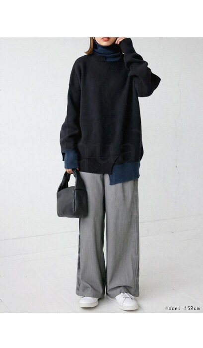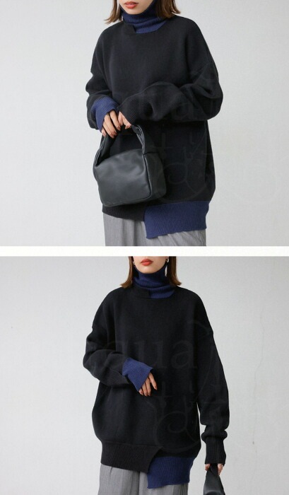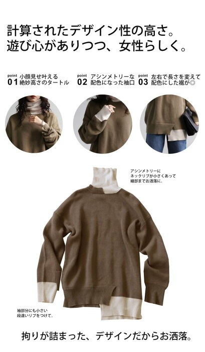 【検索ワード】配色アシメデザインニット ニット レディース トップス 長袖 無地 綿100 セーター 配色 アシンメトリー アシメ タートルネック ハイネック 変形 リブ 段違い ゆったり バイカラー チクチクしない コットンニット 綿ニット 上品 きれいめ モード 綿 コットン 大きめ 大きいサイズ antiqua アンティカ 大人 おしゃれ 10代 20代 30代 40代 50代 60代 春 秋 冬 お洒落 カジュアル かわいい かっこいい あんてぃか
