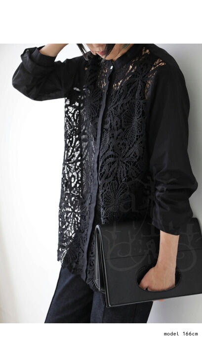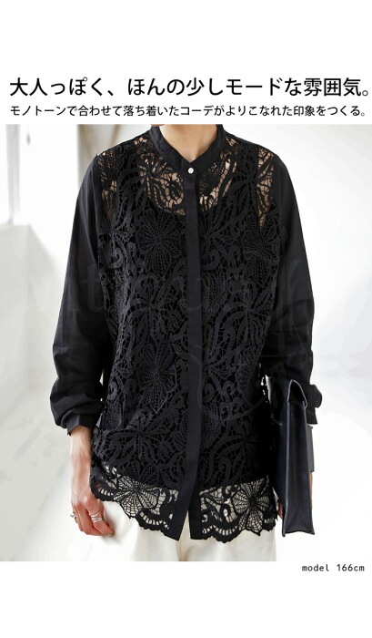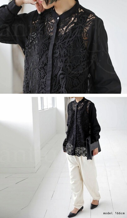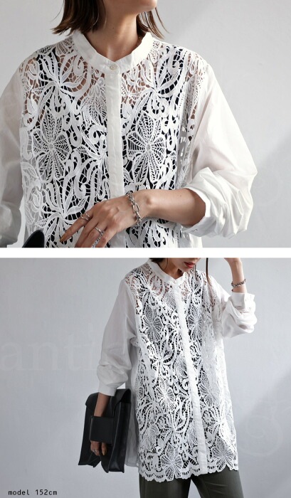 【検索ワード】レースフロントシャツ シャツ レディース トップス 長袖 レース 上品 きれいめ ブラウス 透け 重ね着 レイヤード スタンドカラー バンドカラー 比翼ボタン シェルボタン フォーマル 結婚式 二次会 パーティー オケージョン antiqua アンティカ 大人 おしゃれ 10代 20代 30代 40代 50代 60代 春 夏 お洒落 カジュアル かわいい かっこいい あんてぃか