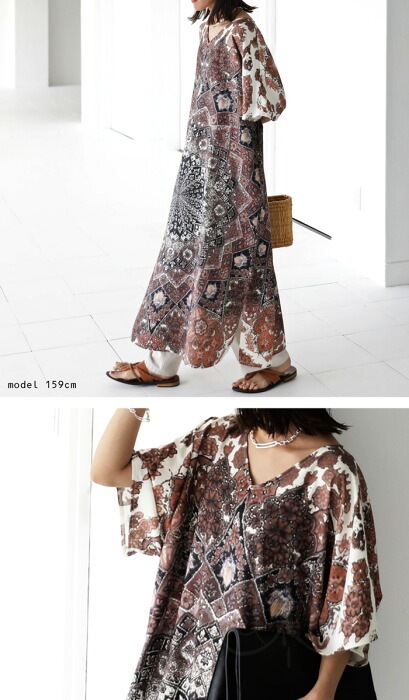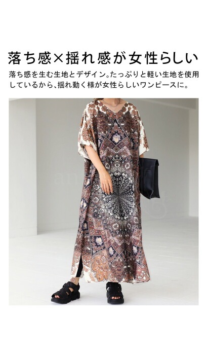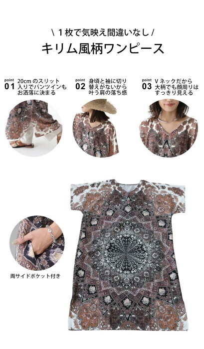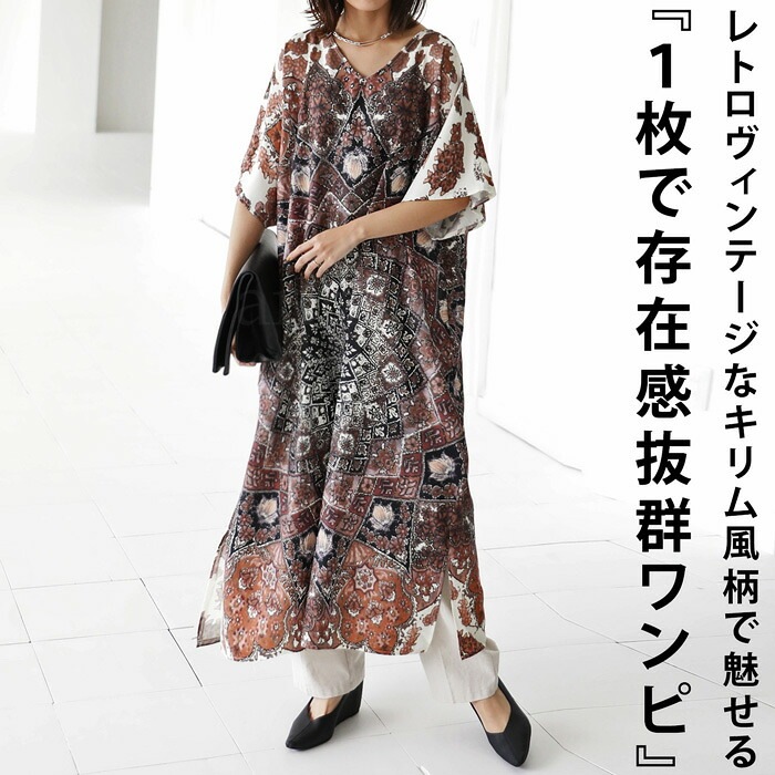 【検索ワード】BES キリム風柄 ワンピース レディース 半袖 ロング 柄ワンピ 柄 キリム風 絨毯柄 ゆったり Vネック スリット レイヤード 重ね着 ヴィンテージ感 プリントワンピ ロングワンピ ワンピ オーバーサイズ 大きいサイズ antiqua artichoke アンティカ アーティチョーク 大人 おしゃれ 10代 20代 30代 40代 50代 60代 春 夏 お洒落 カジュアル かわいい かっこいい あんてぃか