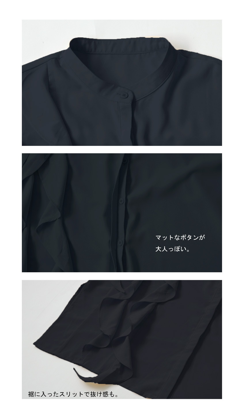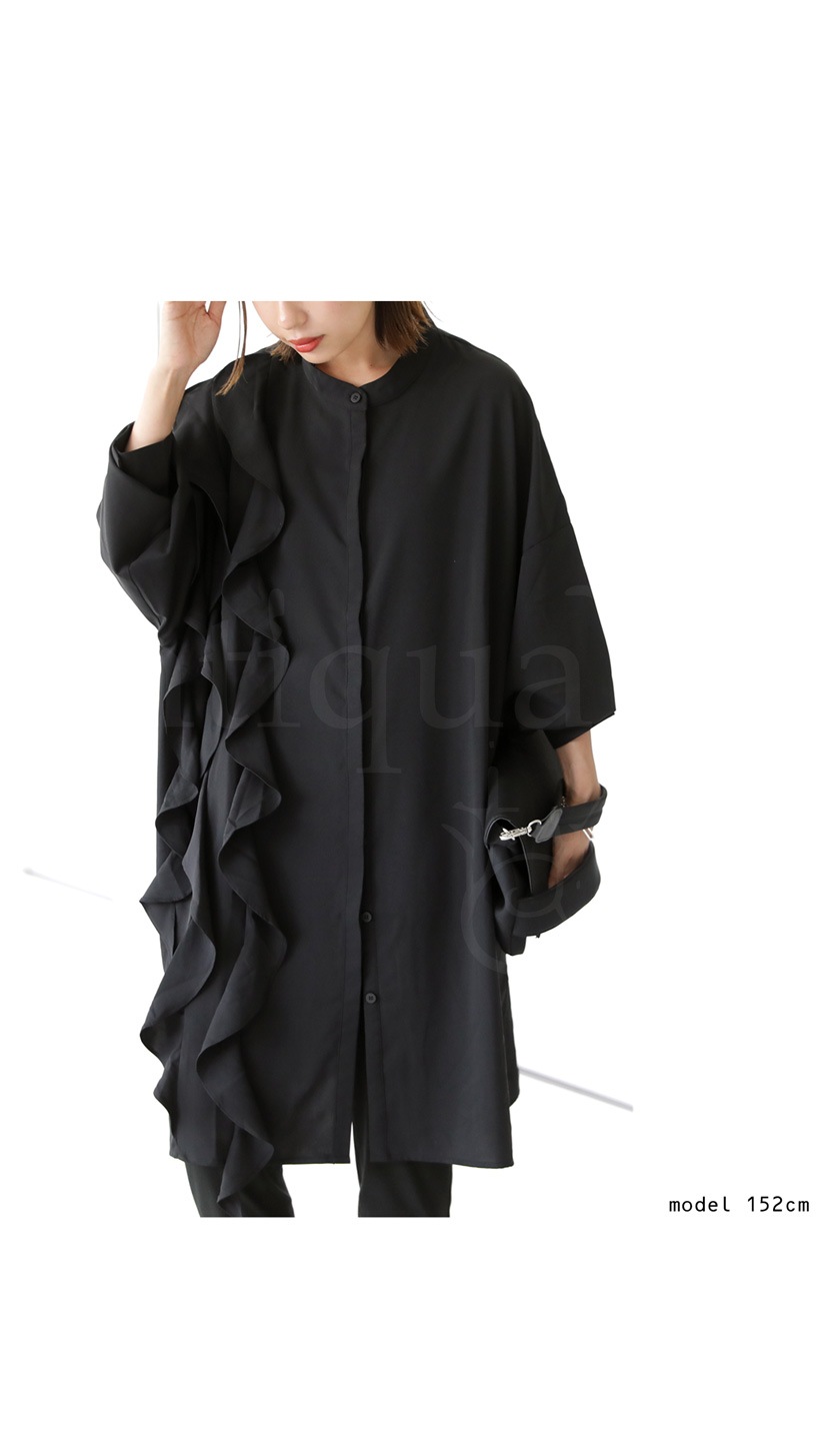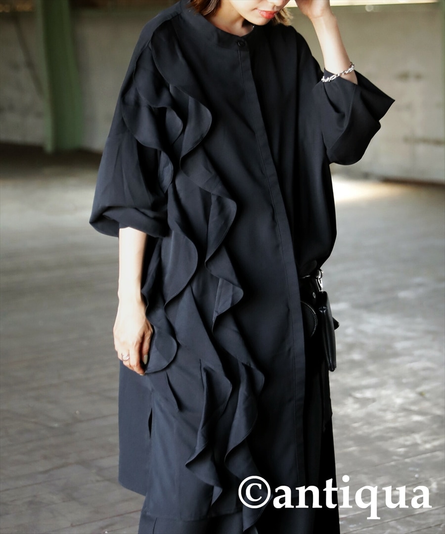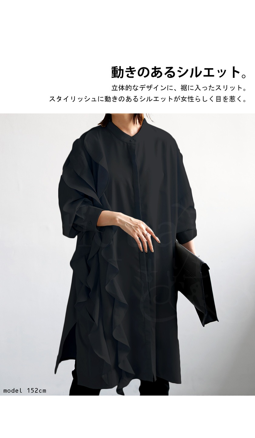 【検索ワード】フリルデザインシャツ シャツ レディース トップス 長袖 無地 フリル アシンメトリー アシメ スタンドカラー バンドカラー ゆったり きれいめ 上品 ロング ブラウス ロングシャツ スリット 比翼ボタン モード クラシカル とろみ生地 落ち感 高級感 フォーマル 結婚式 二次会 パーティー オケージョン オーバーサイズ 大きいサイズ antiqua アンティカ 大人 おしゃれ 10代 20代 30代 40代 50代 60代 春 夏 秋 冬 オールシーズン お洒落 カジュアル かわいい かっこいい あんてぃか
