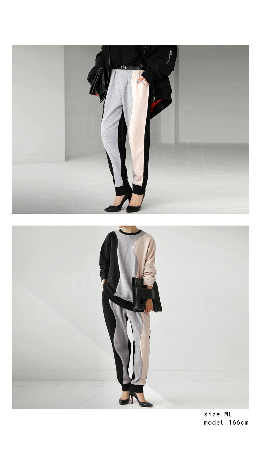 【検索ワード】配色スウェットパンツ パンツ レディース ボトムス ロング 綿100 裏毛 スウェット スウェットパンツ 裏毛パンツ 配色 切替 変形 アシメ セットアップ 長ズボン コットン 綿 ウエストゴム イージーパンツ 裾リブ ラフ サイズ展開 ML LXL 大きいサイズ ユニセックス antiqua treecafe アンティカ ツリーカフェ 大人 おしゃれ 10代 20代 30代 40代 50代 60代 春 秋 冬 お洒落 カジュアル かわいい かっこいい あんてぃか