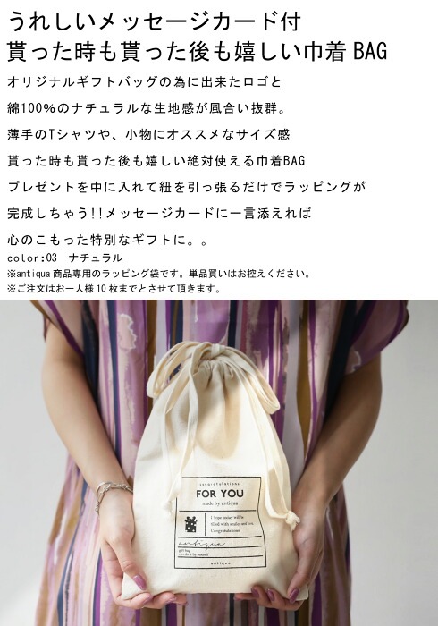 【検索ワード】 antiqua オリジナル ギフトバッグ ミニ 巾着バッグ メッセージカード付 ショップ袋 ギフトバッグ プレゼント ラッピング ショップバッグ ショッパー 袋 布製 巾着袋 綿100 ナチュラル 綿 コットン 大容量 ラッピングキット ギフト 包装 antiqualife antiqua life アンティカ 大人 お洒落 おしゃれ 便利 生活雑貨 収納 家電 美容グッズ 高機能 ハイセンス 衣類 ファッション インテリア オリジナル