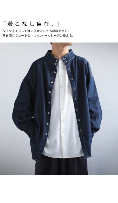 【検索ワード】リングスナップ デニムシャツ シャツ メンズ トップス 長袖 綿100 デニム 羽織り デニムジャケット ハイネック スタンドネック スナップボタン リングドット タック 切替え 立体感 配色ステッチ 綿 コットン ライトアウター 軽アウター カバーオール ゆったり オーバーサイズ 大きいサイズ ユニセックス 男性 男 かっこいい カッコイイ カジュアル antiqua treecafe アンティカ ツリーカフェ メンズファッション トレンド コーディネート 通販 ブランド 春 秋 冬 あんてぃか