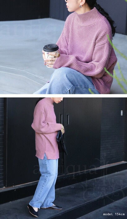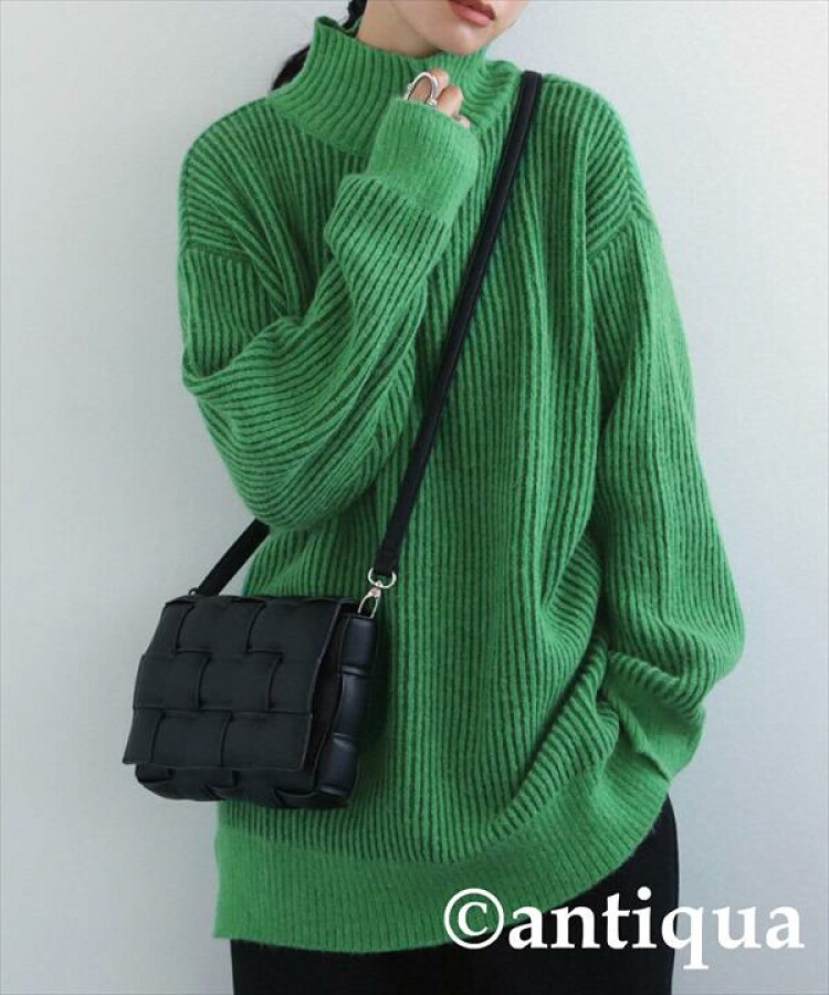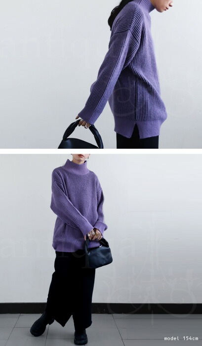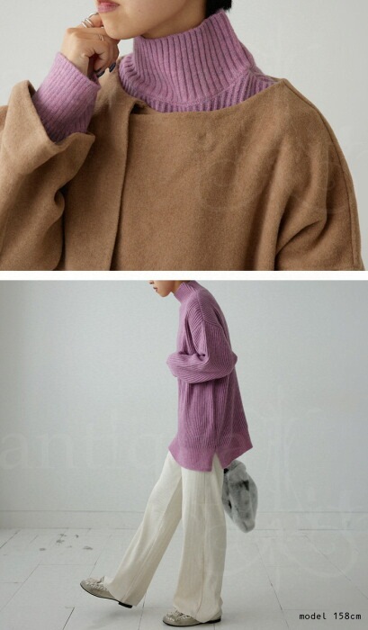 【検索ワード】アルパカタッチニット ニット レディース トップス セーター リブニット 長袖 ハイネック ボトルネック シンプル 無地 畝 リブ編み 小さめ コンパクト 長め丈 スリット ふんわり 軽い 軽量 チクチクしない 細見え ジャストサイズ antiqua アンティカ 大人 おしゃれ 10代 20代 30代 40代 50代 60代 秋 冬 お洒落 カジュアル かわいい かっこいい あんてぃか