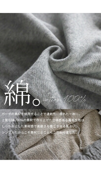 ・速乾性に優れた綿100%のガーゼ素材を使用。