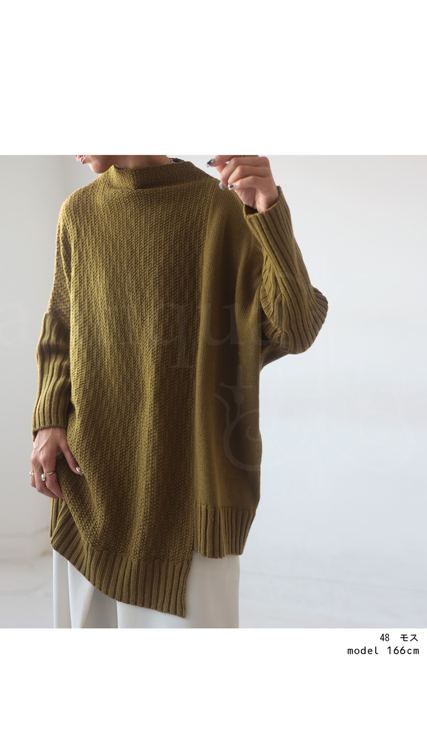 【検索ワード】アシメデザインニット ニット レディース トップス 長袖 セーター プルオーバー ボトルネック ハイネック アシンメトリー アシメ ラーベン編み 天竺編み 切替え デザインニット ドロップショルダー 長め リブ 裾アシメ ゆったり オーバーサイズ 大きめ 大きいサイズ antiqua アンティカ 大人 おしゃれ 10代 20代 30代 40代 50代 60代 秋 冬 お洒落 カジュアル かわいい かっこいい あんてぃか