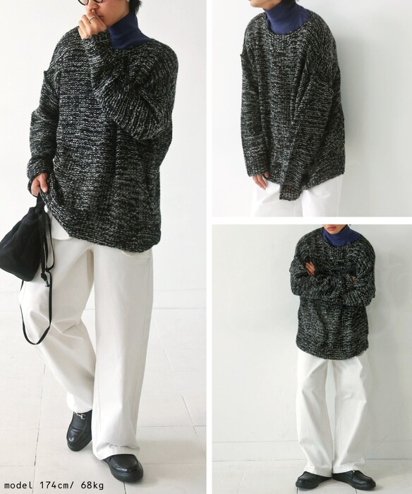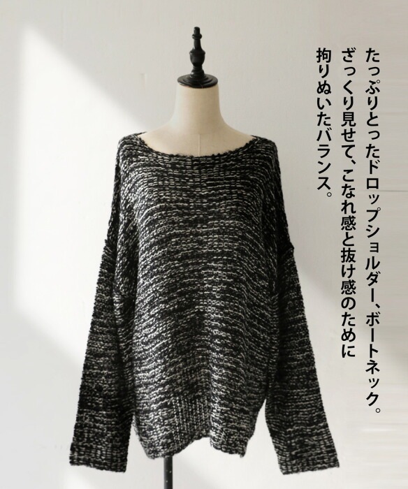 モヘアタッチの細い糸で編んだざっくりとしたローゲージニット。