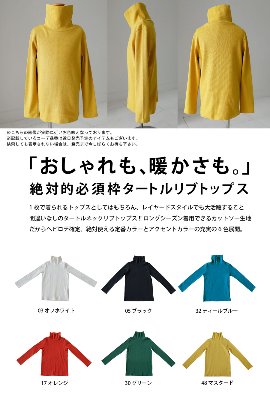 お洒落も、暖かさも◎『タートルリブトップス』