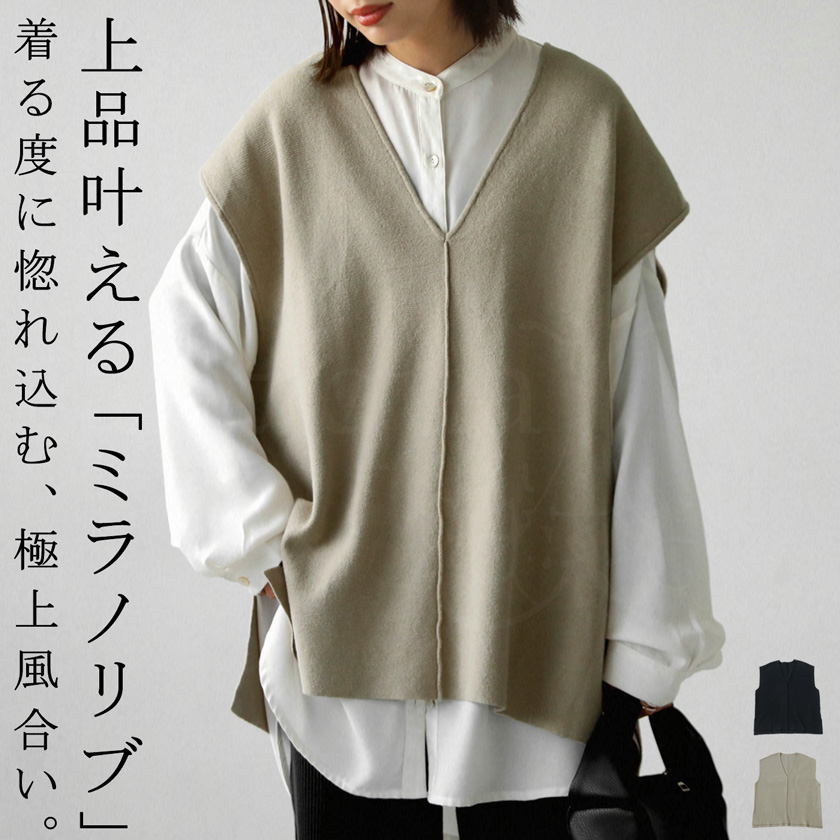 ミラノリブ ニットベスト レディース トップス ニット ベスト・再入荷 メール便不可