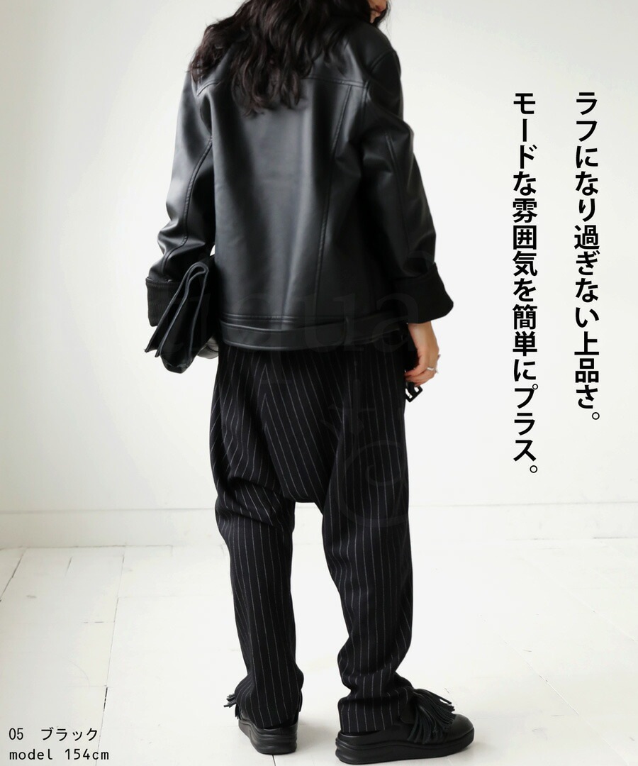 ラフになりがちなサルエルパンツがオトナモードに変身。