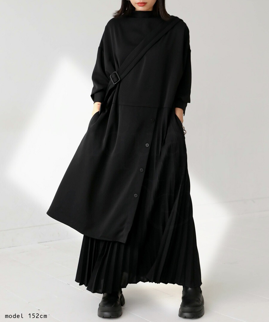 【検索ワード】アシメプリーツワンピ ワンピース レディース ロング 無地 長袖 スタンドネック ハイネック プリーツ アシンメトリー アシメ 変形 ラップデザイン レイヤード 重ね着風 ゆったり とろみ生地 きれいめ 上品 モード 高級感 コンシールファスナー マットボタン ロングワンピ ワンピ マキシ丈 ボトルネック ポケット付き フォーマル 二次会 パーティー オケージョン 入卒 入園式 卒園式 入学式 卒業式 セレモニー 謝恩会 晴れの日 ハレの日 antiqua アンティカ 大人 おしゃれ 10代 20代 30代 40代 50代 60代 春 夏 秋 冬 オールシーズン お洒落 カジュアル かわいい かっこいい あんてぃか