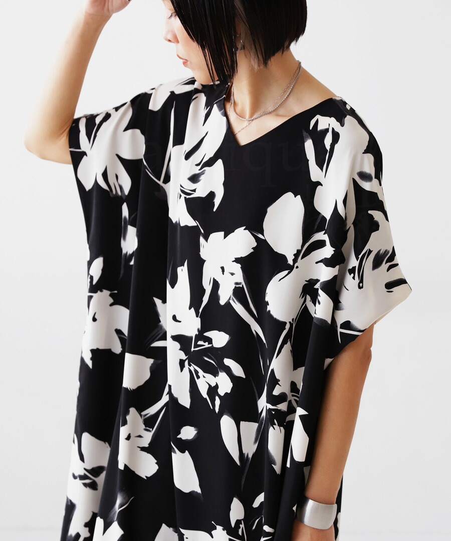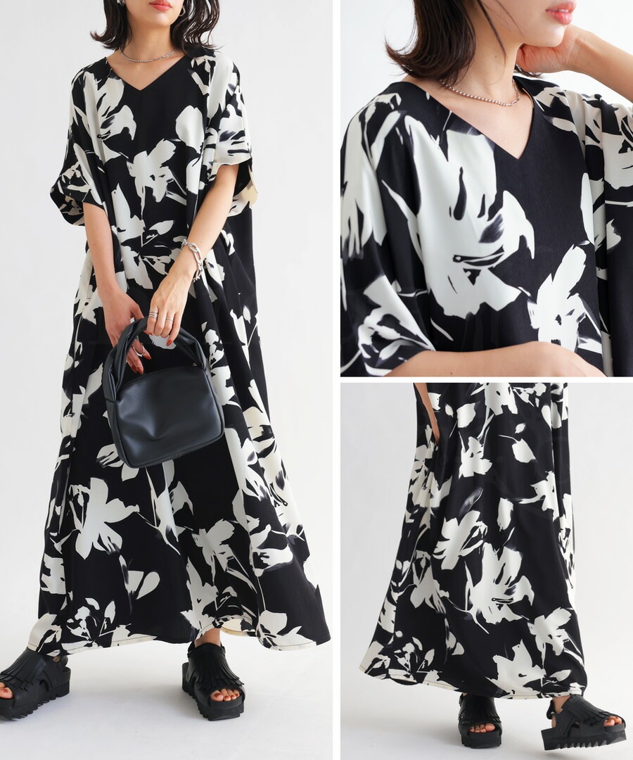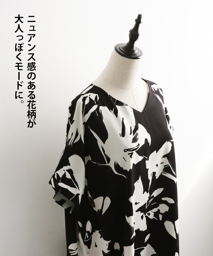 【検索ワード】花柄 ワンピース レディース 半袖 柄ワンピ 柄 Vネック ロング 五分袖 ドルマン ゆったり Aライン モード 総柄 ワイド シンプル ドルマンワンピ ロングワンピ ワンピ モノトーン 着痩せ 二の腕カバー 体型カバー 大きめ 大きいサイズ 裏地付き 入卒 パーティー オケージョン antiqua アンティカ 大人 おしゃれ 10代 20代 30代 40代 50代 60代 春 夏 お洒落 カジュアル かわいい かっこいい あんてぃか