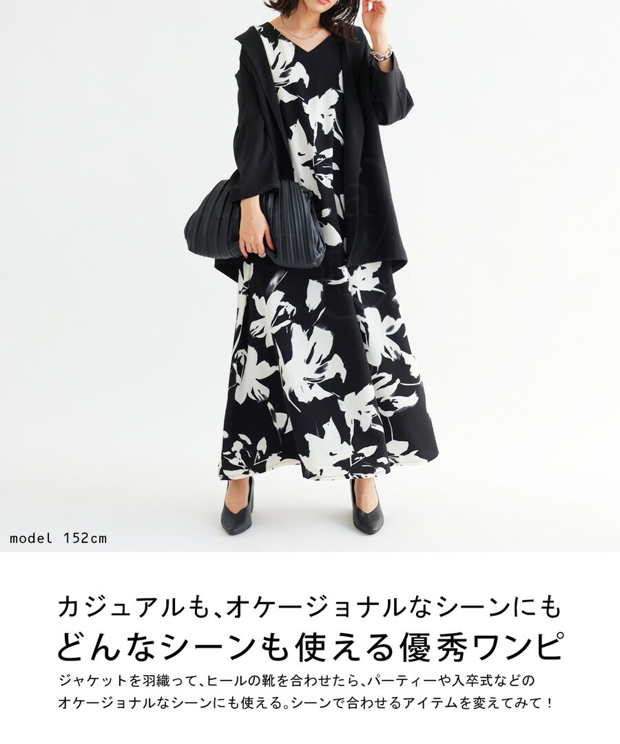 一枚で着映える花柄ワンピースは忙しい朝にも、さっとおしゃれなコーデが完成するから、大活躍間違いなしです!