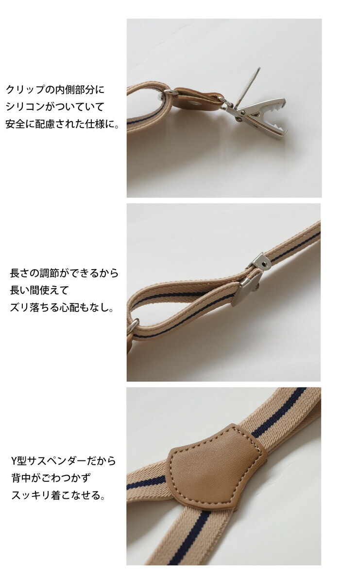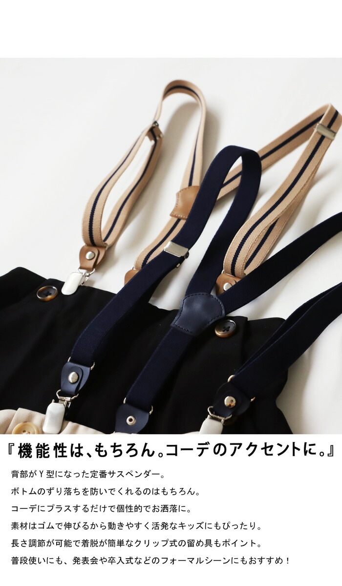 【検索ワード】サスペンダー キッズサスペンダー Y型 ゴム 長さ調節可 シンプル クリップ式 伸縮性 細ベルト 無地 ライン ネイビー ベージュ フォーマル 結婚式 二次会 パーティー オケージョン 入卒 入園式 卒園式 入学式 卒業式 セレモニー 発表会 謝恩会 晴れの日 ハレの日 スーツ お受験 普段着 キッズ 子供服 ジュニア 低学年 高学年 90cm 100cm 110cm 120cm 130cm 140cm 150cm 160cm 双子コーデ プレゼント お祝い 出産祝い 春 夏 秋 冬 オールシーズン 男の子 女の子 女児 男児 通園 通学 お出かけ お洒落 アンティカ antiqua おしゃれ 可愛い かっこいい