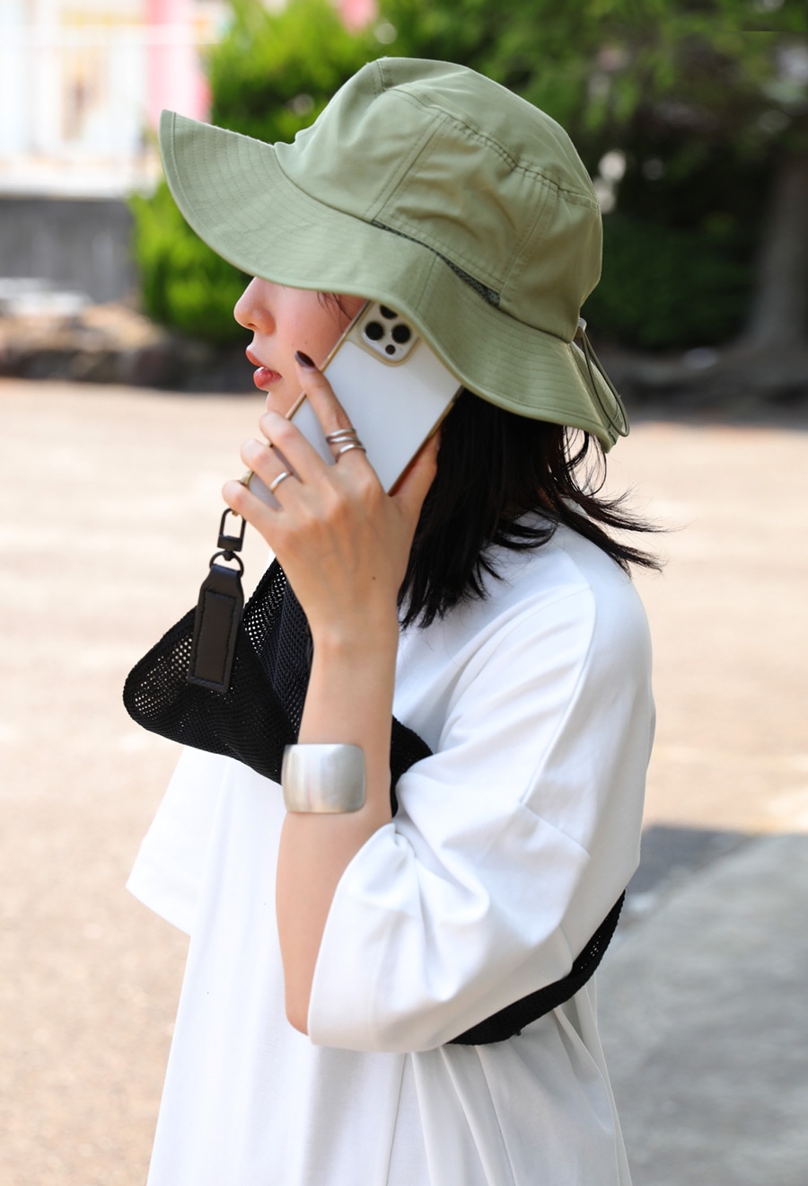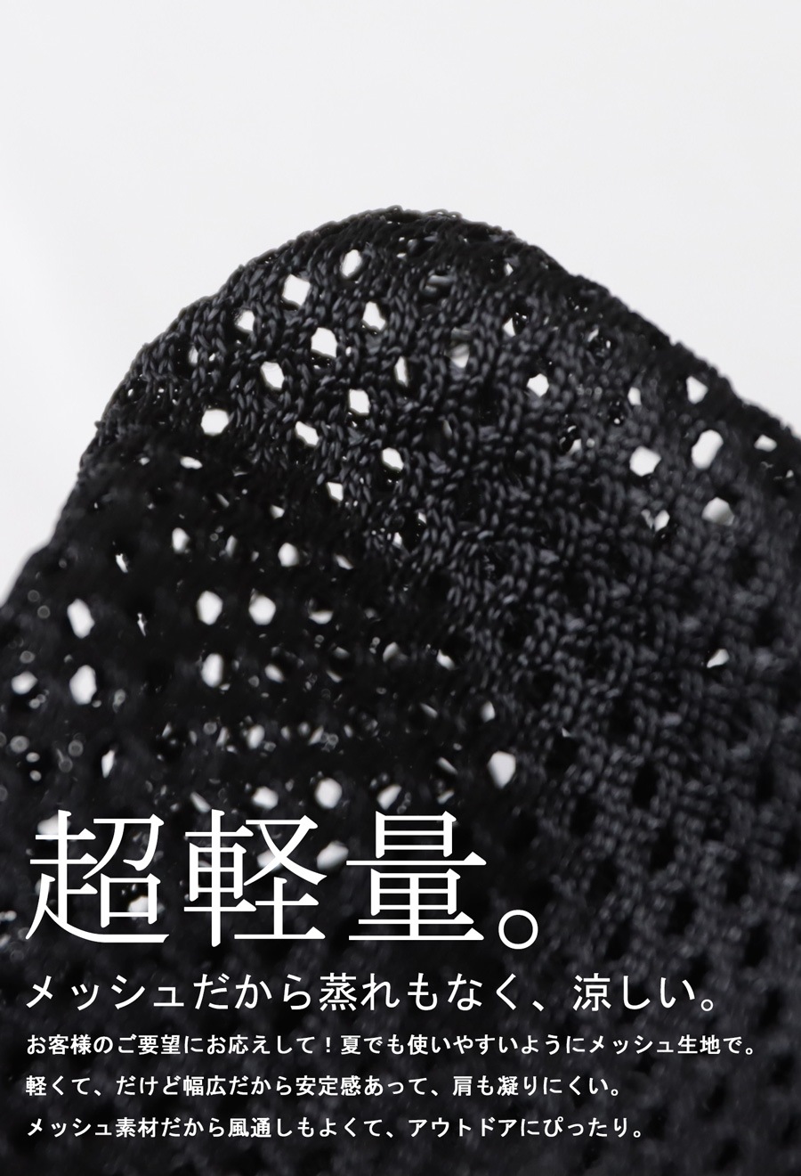 軽量で通気性の良いメッシュだから蒸れにくく、アウトドアシーンでも快適に使える仕様です。