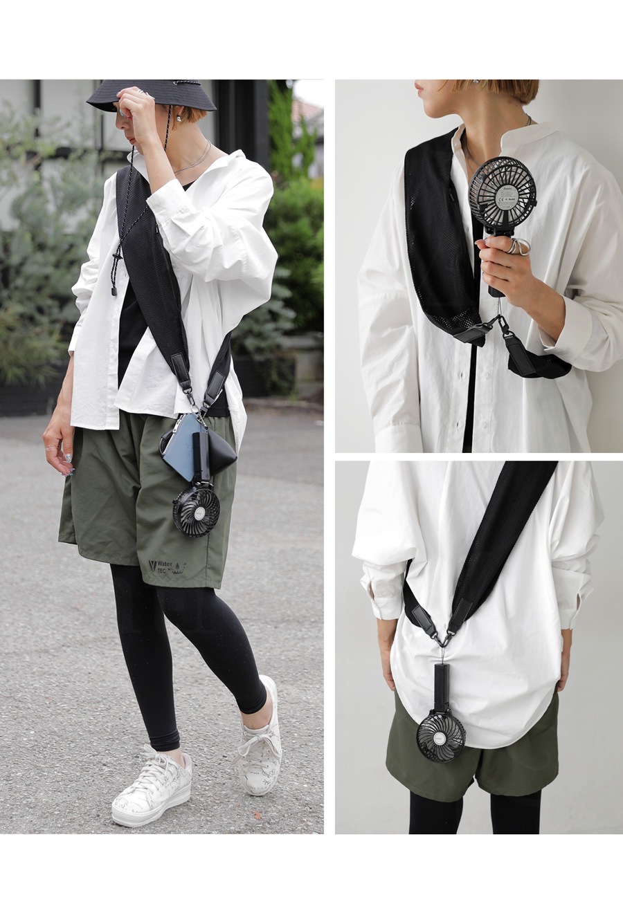ストラップの先端にはナスカンを採用し、スマホケースはもちろん、カメラやコインケース、ハンディファンなどマルチショルダーとして対応可能。