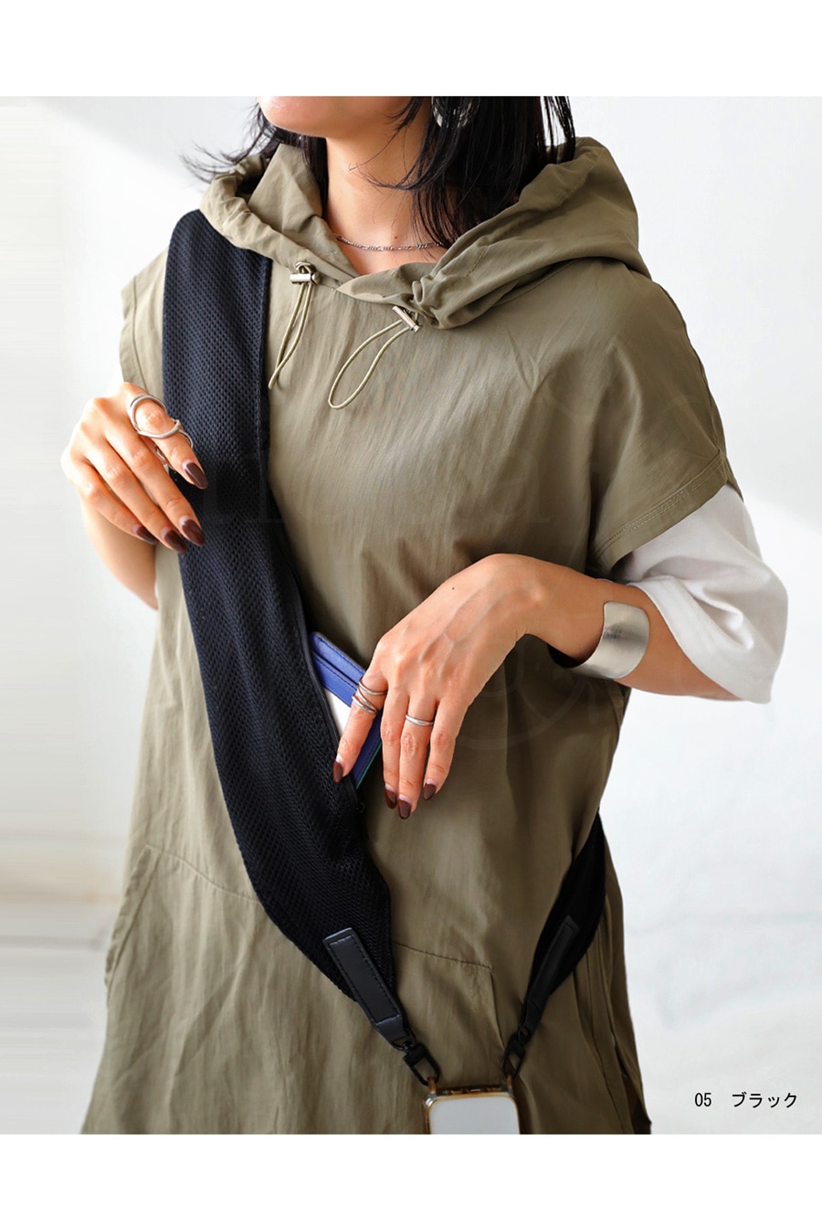 また、肩から斜め掛けできるたっぷり丈感で、両手が自由になるハンズフリースタイルを実現します。