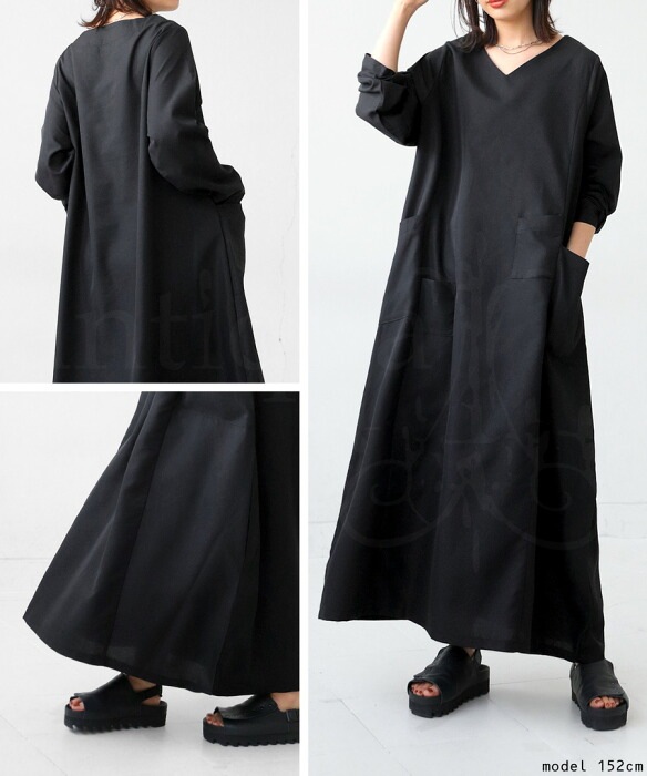 ポケット付き ワンピース レディース ロング 長袖・再再販。(100)メール便可