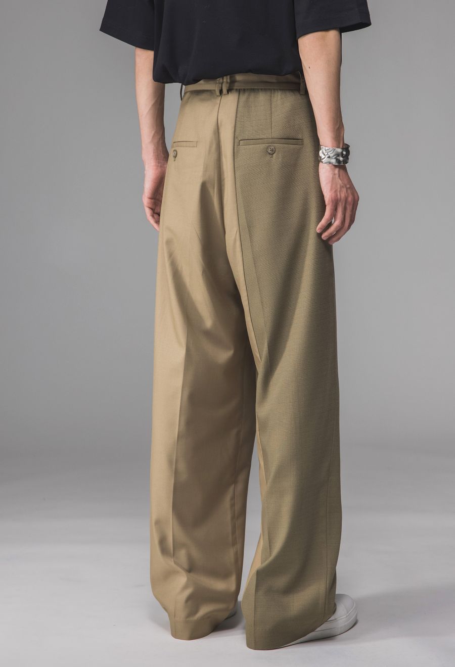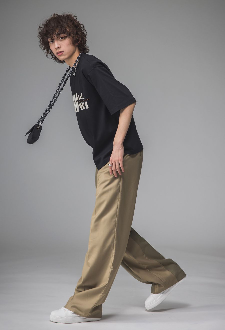 スラックスのようなきれいめ感と、落ち感のあるストレートなワイドシルエットが魅力の一本です。