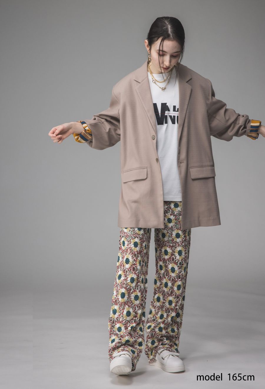 形状はゆったりとしたストレートシルエットで、裏地付きのため肌見せしすぎず安心して着用可能。