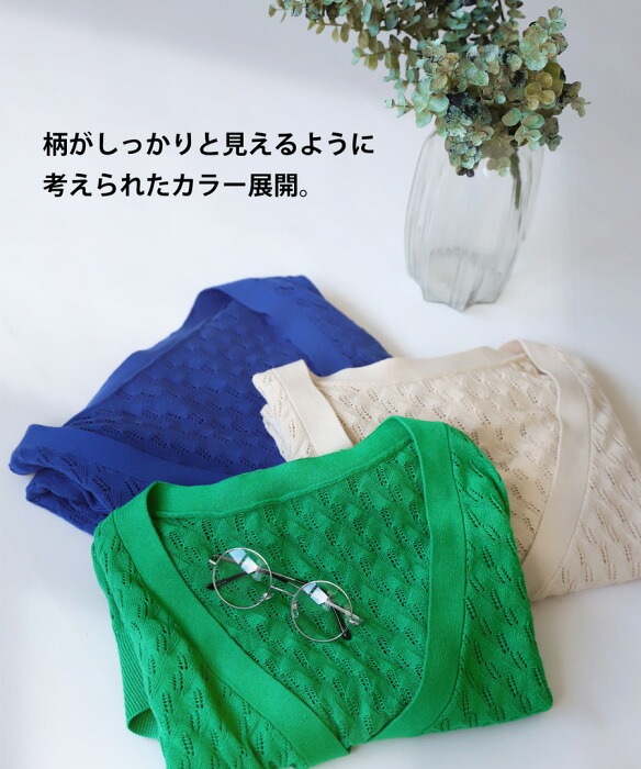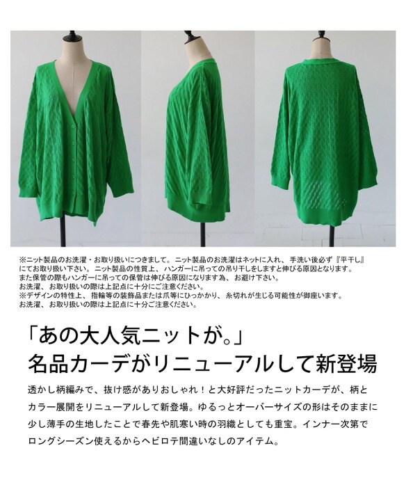 透かし柄編みで大好評だったニットカーデが柄とカラーをリニューアルして新登場!