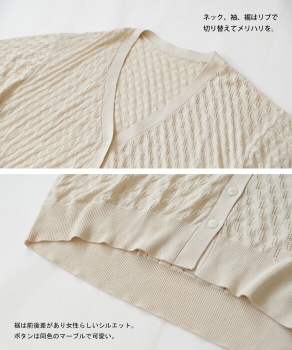 透かし編み カーディガン レディース トップス 長袖 送料無料・メール便不可