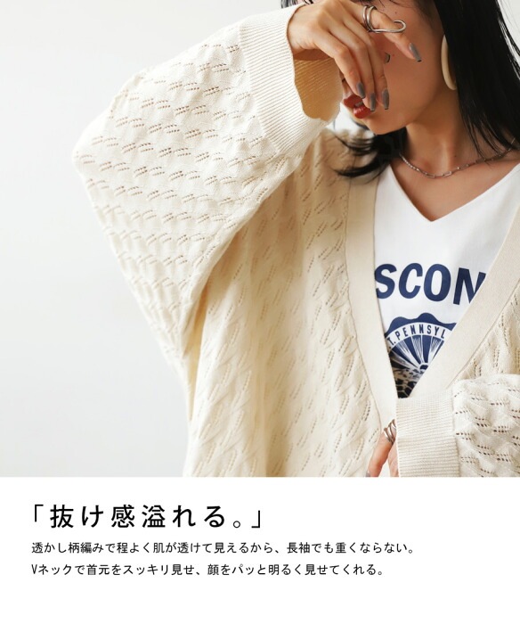 【検索ワード】透かし編み カーディガン レディース トップス 長袖 ニット ニットカーデ ゆったり オーバーサイズ Vネック 羽織り 長め丈 ワイド 前開き 前後差 ラウンド裾 カーデ アウター 薄手 伸縮 ビッグシルエット 大きめ 大きいサイズ antiqua アンティカ 大人 おしゃれ 10代 20代 30代 40代 50代 60代 春 秋 冬 お洒落 カジュアル かわいい かっこいい あんてぃか