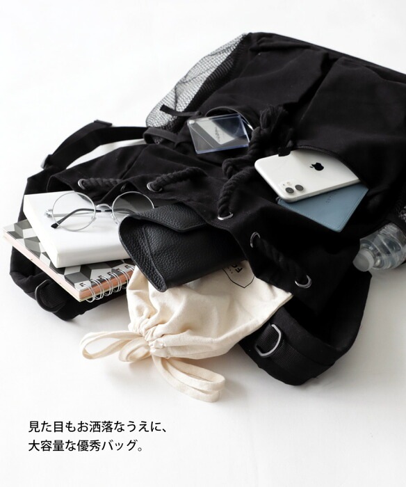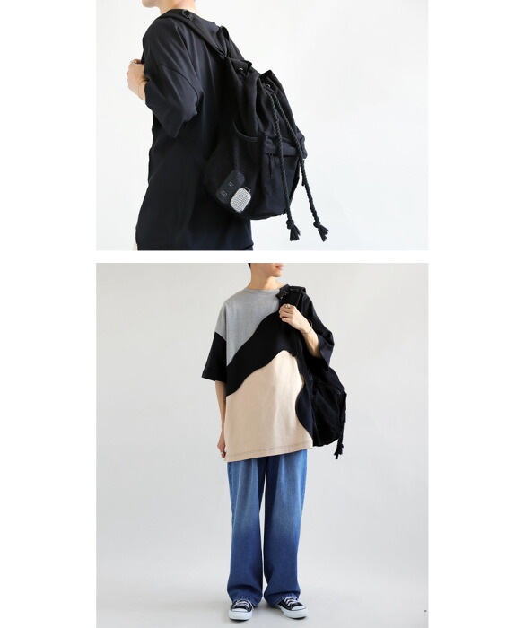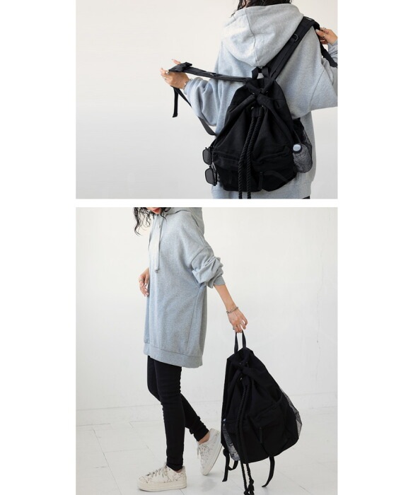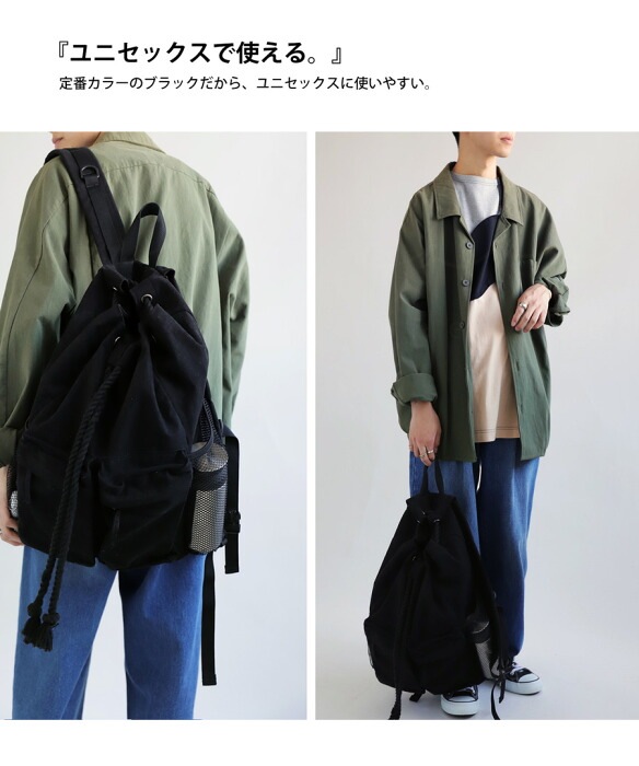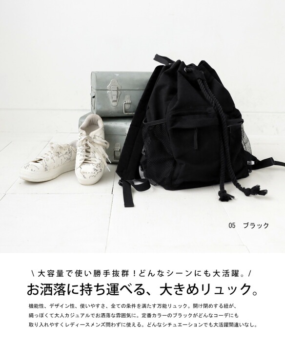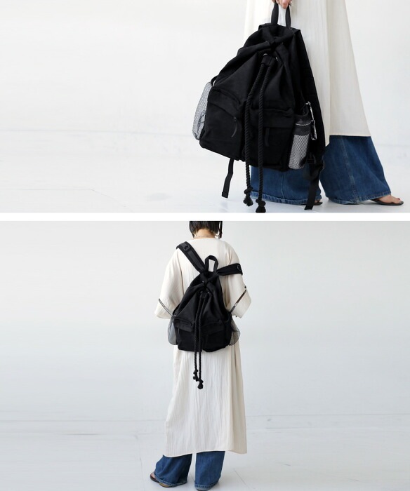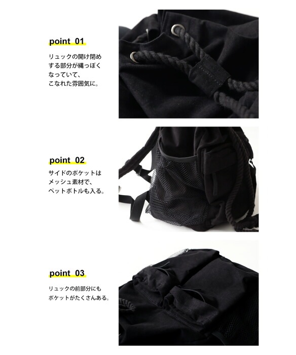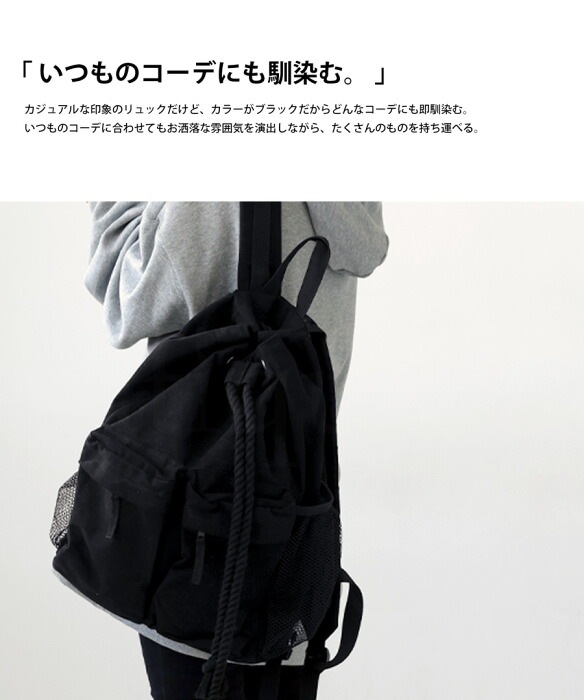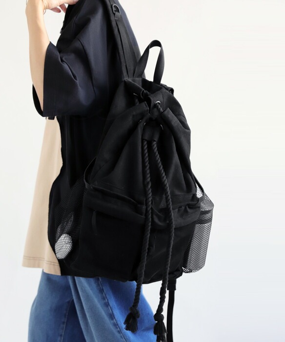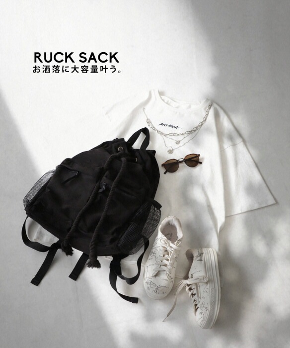 ・リュックの開け閉めする部分が縄っぽくなってこなれ感。