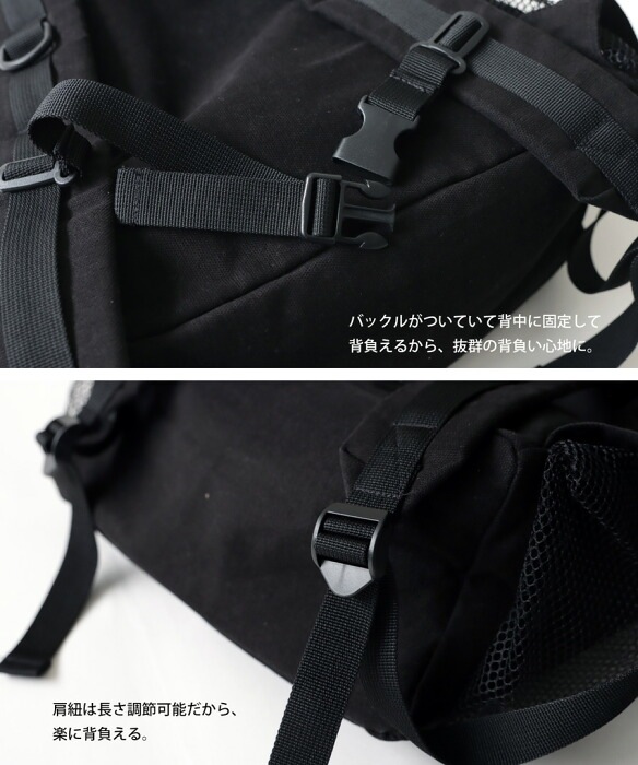 ・バックルがついていて背中に固定して背負える。