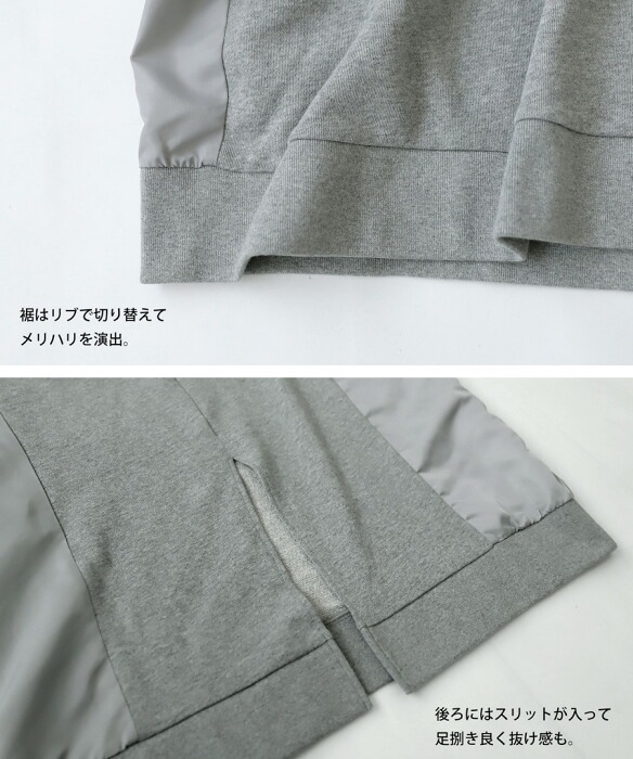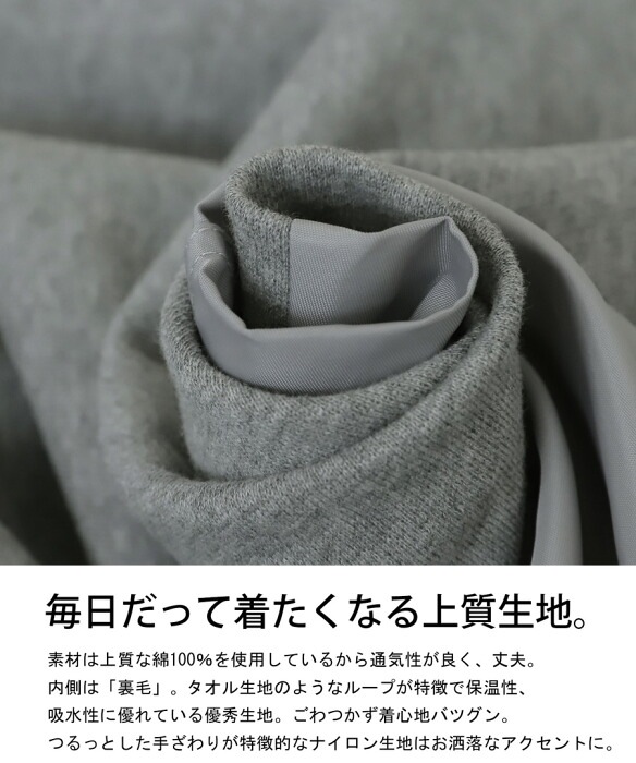 綿100%で風合い抜群の裏毛素材にナイロン素材をドッキング。